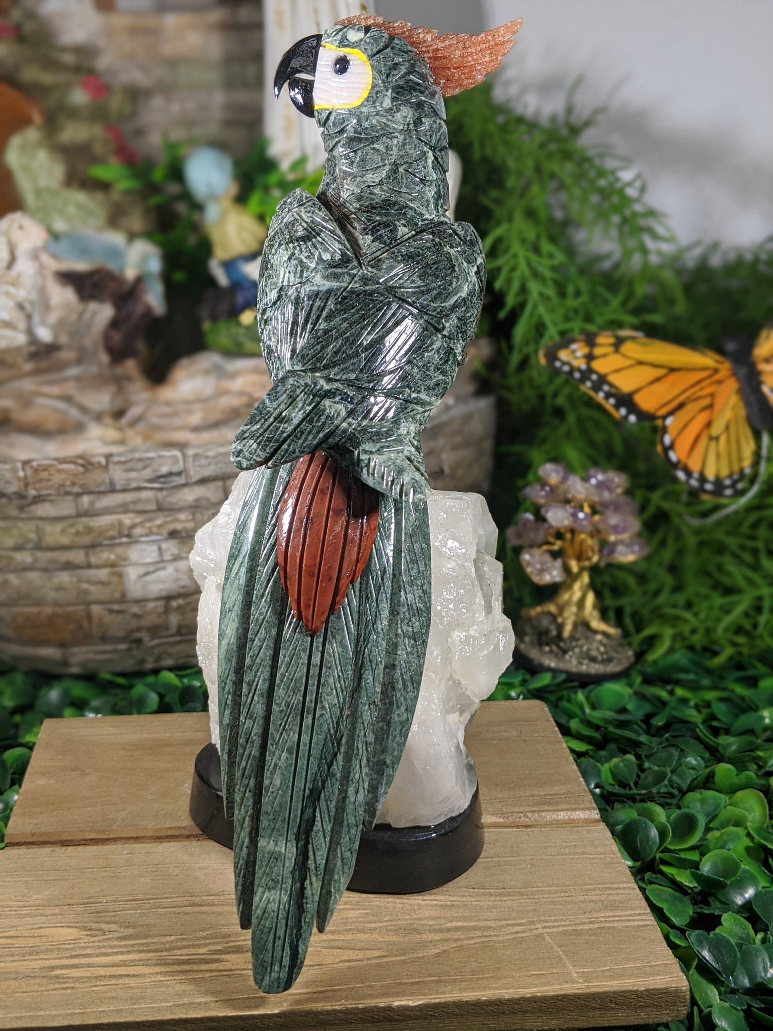 White Quartz Cluster with Base  and Bird Sculpture Crystal Home Decor Healing Feng Shui Reiki Chakra
