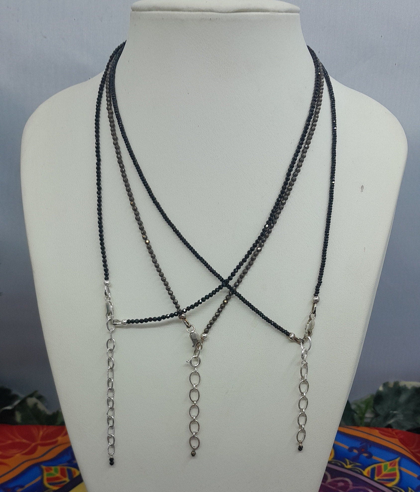 Natural Faceted Beads Necklace, Pyrite, Black Tourmaline, Black Spinel. 100% Genuine gemstones high quality handmade work made with love for you to enjoy All the necklaces are approximately 19" inches long.