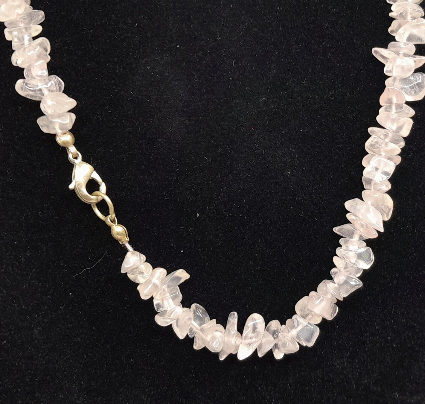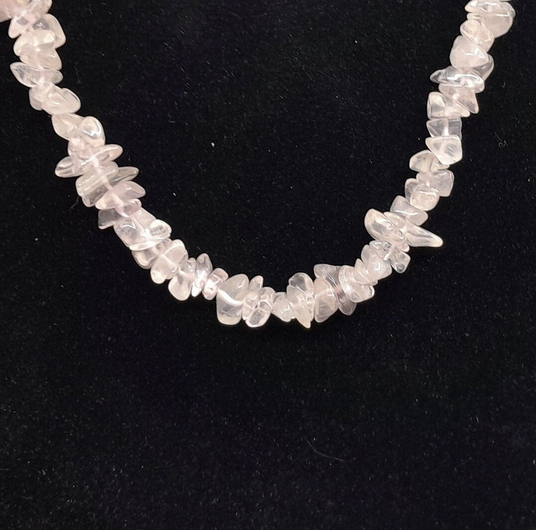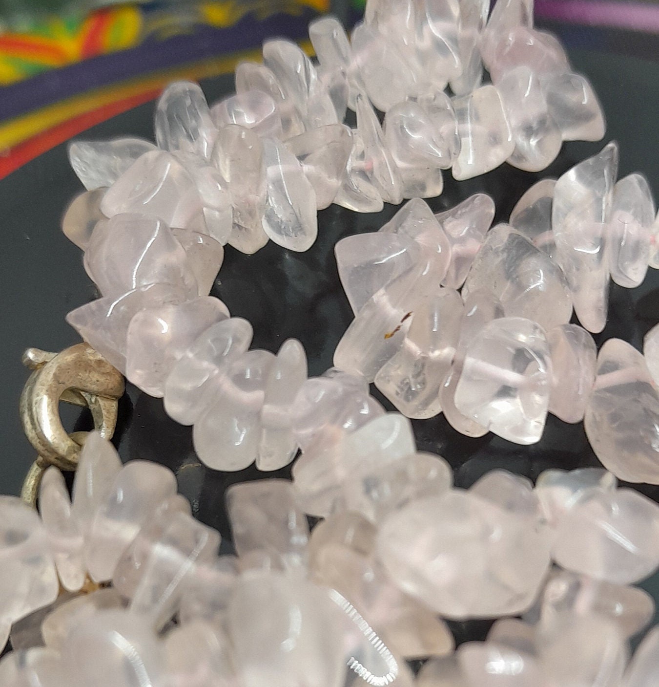 ROSE QUARTZ Necklace, Gemstone Necklace, Vial, Love, Boho Necklace This is a SMALLER version of the perfume bottle necklaces. This fits more like a short necklace or choker 18" inches long Beautiful Rose Quartz Beads Necklace.