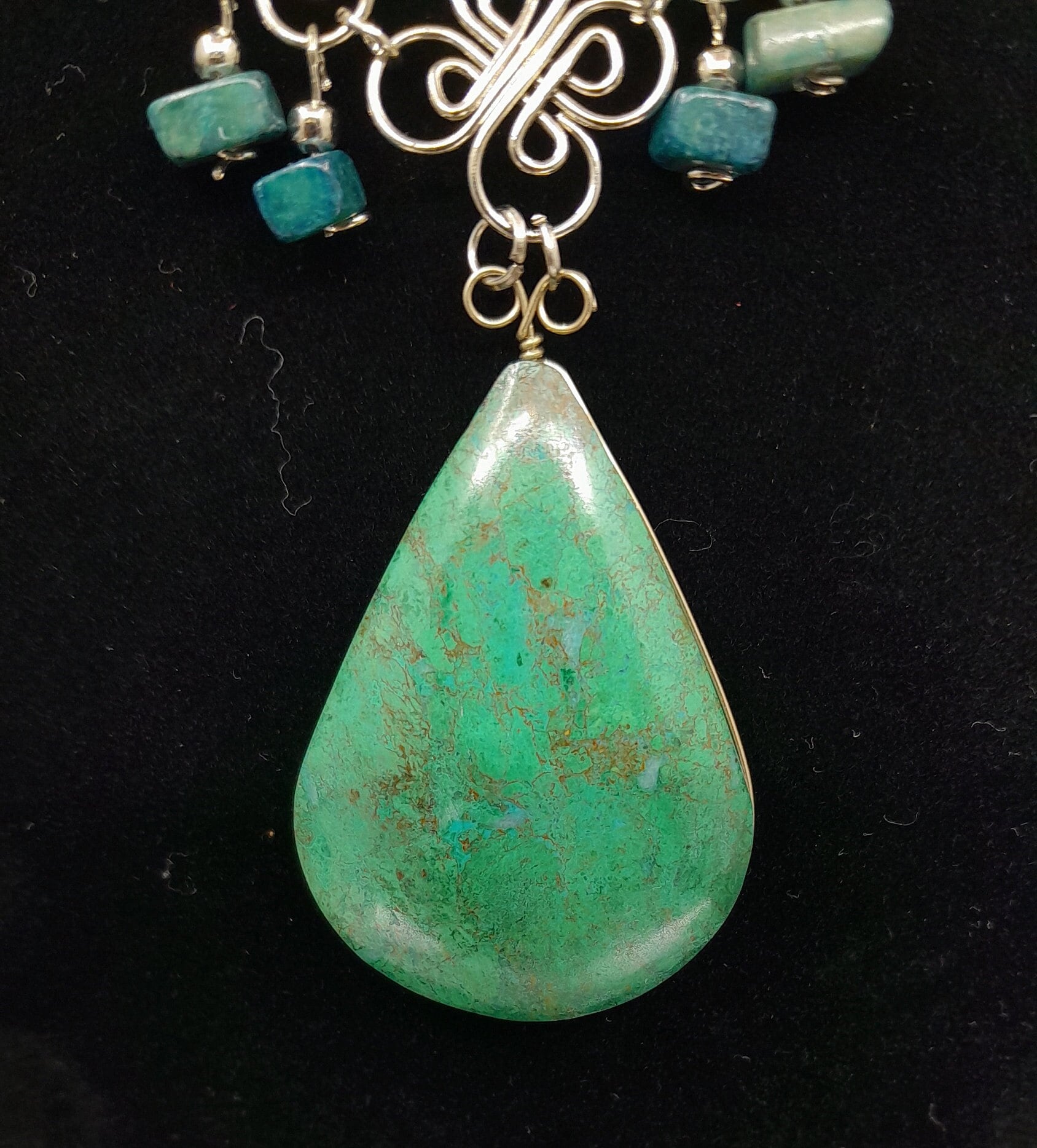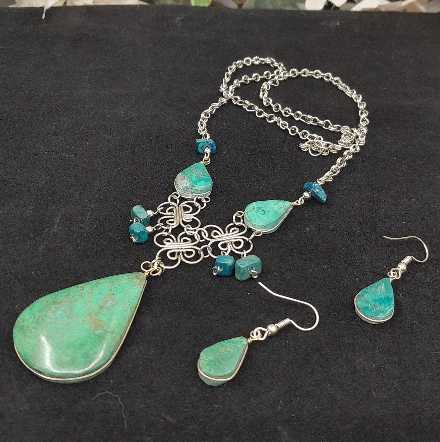 Beautifully Wire Wrapped Chrysocolla Necklace with Earrings.